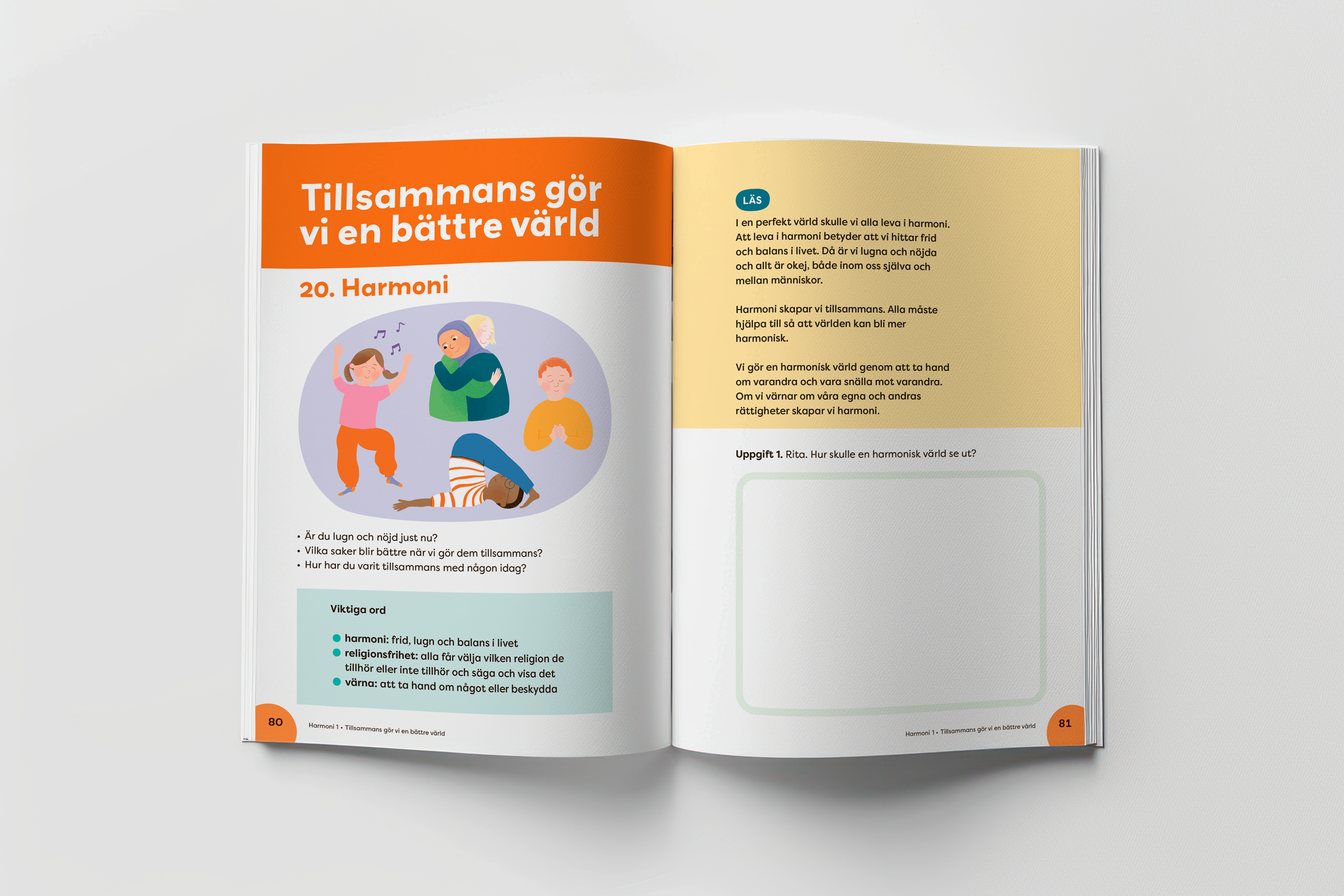 Harmoni 1 är en kombinerad text- och arbetsbok i religion för årskurs 1.